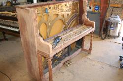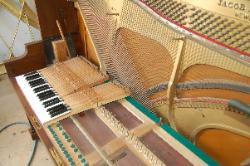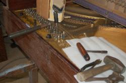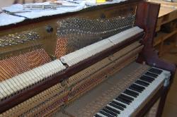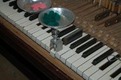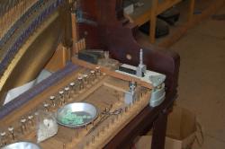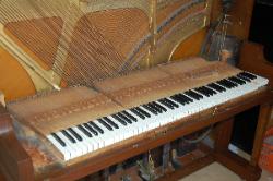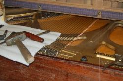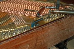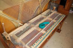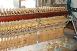Your piano is a beautiful piece of furniture, and it is also a wonderful machine for making musical entertainment. It's needs deserves intelligent care. Your piano is a complex blending of many diverse and costly raw materials. There are more then 9,000 parts in the key and action combination alone. If you were to analyze the materials in your piano, you would find top quality wood of many species, iron, steel, copper, brass wool, cotton, and various adhesives. Piano strings are known as the "Blue Chip" of the steel industry. They represent the highest development in steel wire and but few mill have the ability to manufacture them. Remember that there are more then 200 strings in standard piano and their combined tension experts a pull of better then 18 tons. These strings bear upon the sounding board by means of wooden bridges and a system of reverse bearing which lock the strings and sounding together. Each of these strings must be kept at the proper designed tension or the piano will be off pitch and produce an inharmonious tone. In other words it will be OUT OF TUNE.
